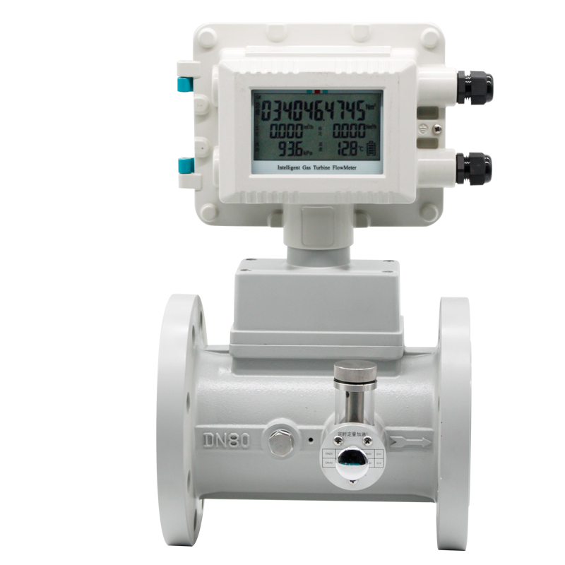 當天然氣進入流量計時,首先要經(jīng)過氣體渦輪流量計內(nèi)部特殊結(jié)構(gòu)的前導流體并加速。在流體的作用下,渦輪葉片會與流體流向形成一定角度,這個時候渦輪就會產(chǎn)生轉(zhuǎn)動力矩,這個轉(zhuǎn)動力矩需要克服阻力力矩和摩擦力矩之后才能帶動渦輪開始轉(zhuǎn)動。當轉(zhuǎn)動力矩、阻力力矩和摩擦力矩達到平衡時,渦輪的轉(zhuǎn)速就會恒定。而且渦輪轉(zhuǎn)動速度與流量成線性關(guān)系。扇輪的轉(zhuǎn)速經(jīng)一副齒輪減速,同時由一個密封的磁性耦合器件將轉(zhuǎn)動的趨勢傳到儀表外部的機械式計數(shù)器。利用電磁感應原理,通過旋轉(zhuǎn)的渦輪葉片頂端導磁體周期性地改變磁阻,從而在線圈兩端感應出與流體體積流量成正比的脈沖信號,測出脈沖信號的頻率便得到流量的大小。渦輪流量計要與流量計算機配套使用,流量計算機中含有溫度、脈沖、壓力檢測通道,并配有各種通訊接口。